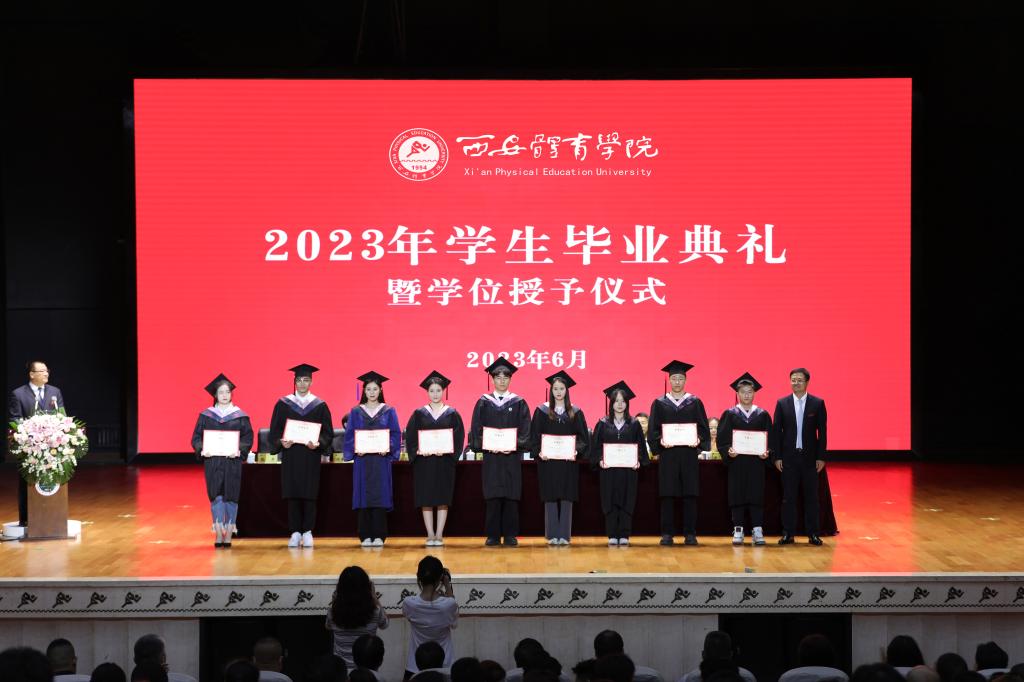 伴随着庄严的国歌声,毕业典礼拉开序幕。谢英宣读了《关于授予2023届本科毕业生学士学位的决定》,授予1989名本科毕业生获得学士学位,其中教育学学士学位1321人,艺术学学位398人,文学学士学位62人,管理学学士学位99人,理学学士学位109人。刘新民宣读了《关于授予2023届研究生硕士学位的决定》,其中授予163名研究生获得教育学硕士学位,189名研究生体育硕士专业学位(全日制),23名研究生体育硕士专业学位(非全日制)。