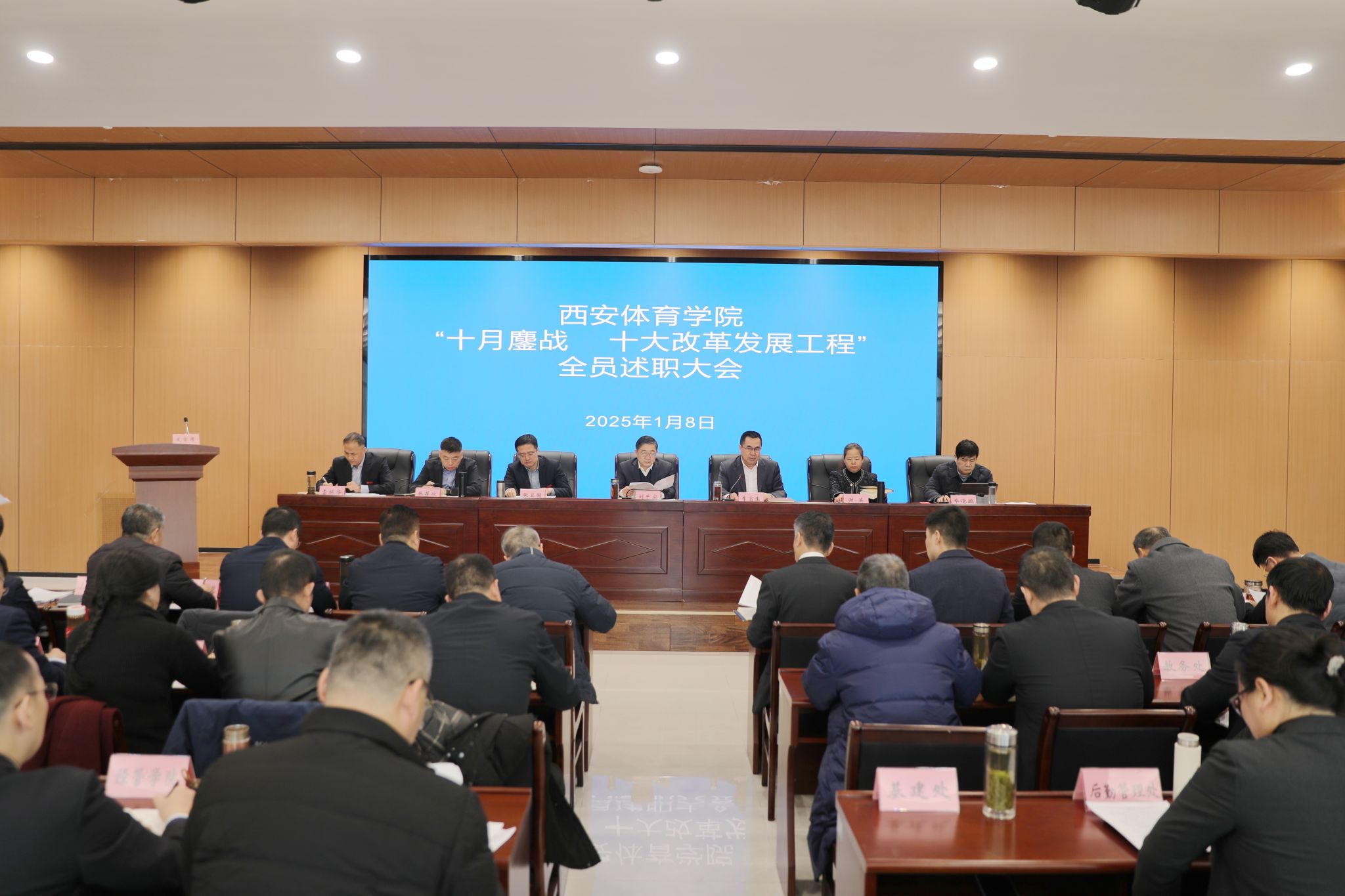 全体教职工以书面和现场相结合的方式进行述职。在大会现场述职的有十大改革发展工程牵头部门负责人、部分处科级干部等31人依次登台,围绕对“十大改革发展工程”的认识、部门和个人完成的工作、鄠建作风的影响等三个方面进行述职。大家结合岗位实际,列数据、报成绩、做对比、谈不足,对标对表直面问题,双向比较寻找短板。述职大会,不仅是展示十大改革发展工程成效的竞技场,更是查漏补缺的检验场。