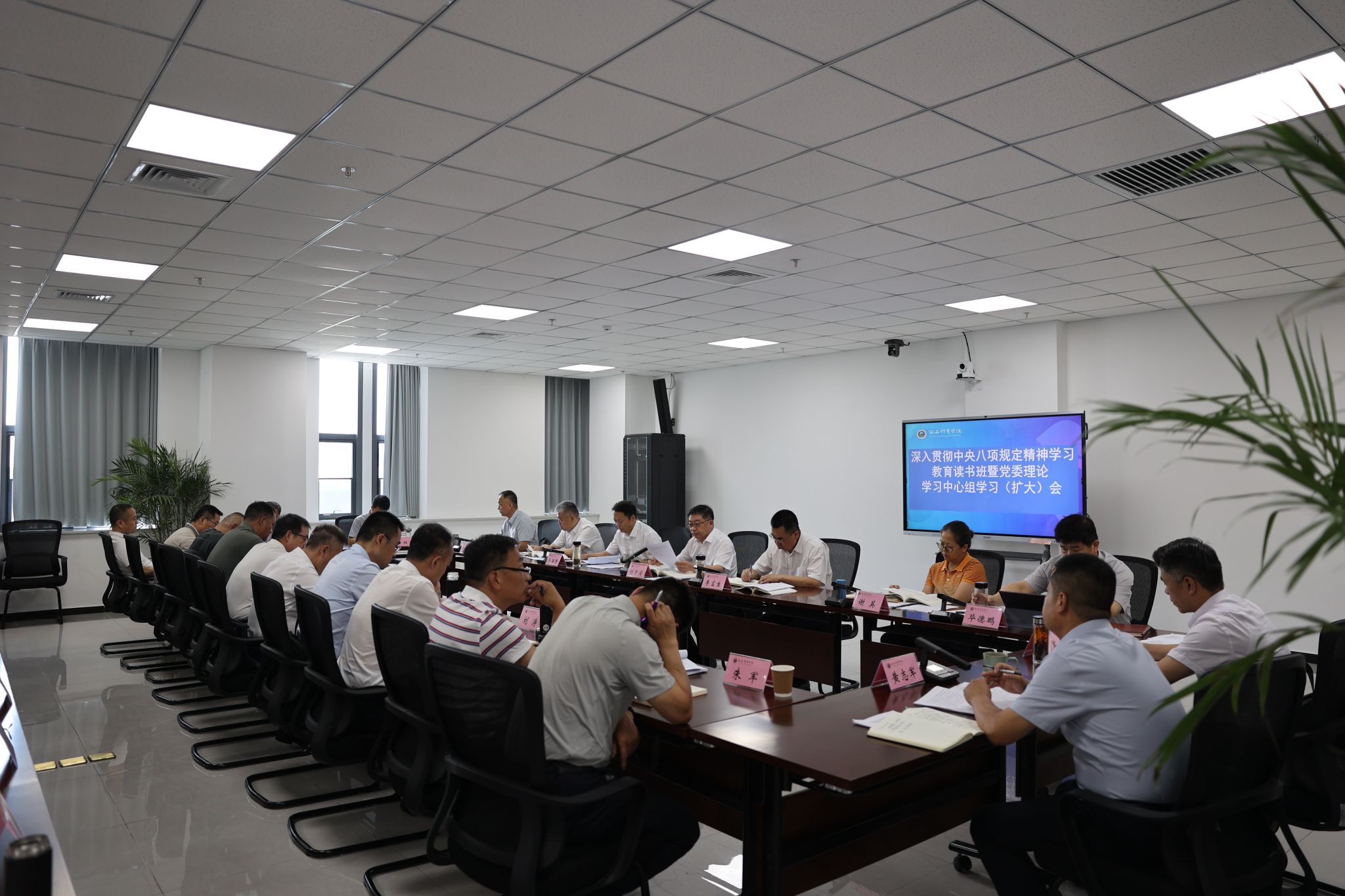 本网讯 6月26日,党委书记刘子实主持召开深入贯彻中央八项规定精神学习教育读书班暨党委理论学习中心组学习(扩大)会,学习《习近平关于加强党的作风建设论述摘编》、《党政机关厉行节约反对浪费条例》和《八项规定改变中国》,重温习近平总书记在二十届中纪委四次全会上重要讲话。