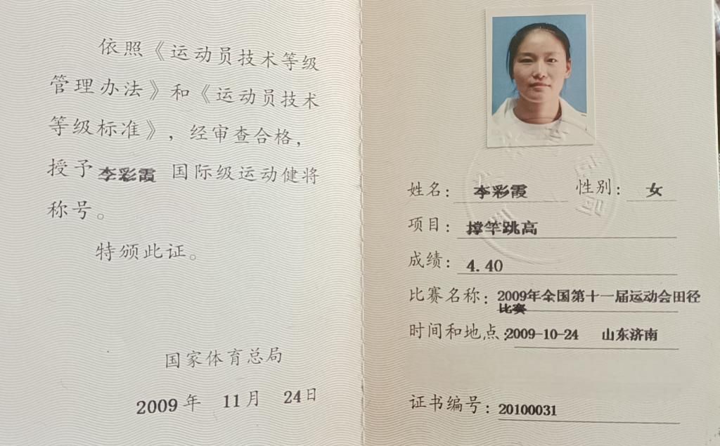 撑竿跳国际级运动健将李彩霞